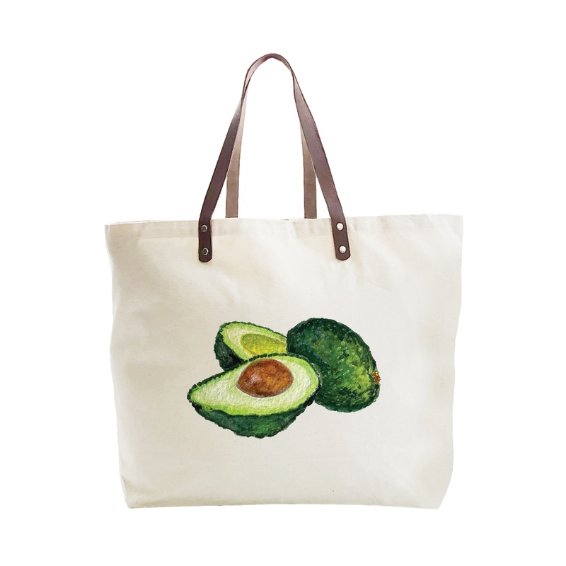 Large cotton canvas tote with leather handle is 22" x 15" x 5.5" and looks great with our original Tina Labadini Designs art. Our stylish totes are fun accessories and make great gifts.