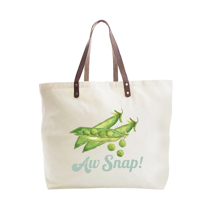 Large cotton canvas tote with leather handle is 22" x 15" x 5.5" and looks great with our original Tina Labadini Designs art. Our stylish totes are fun accessories and make great gifts.