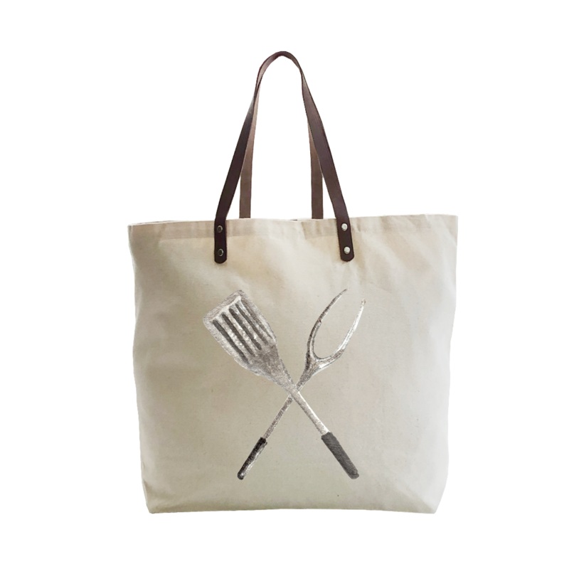 Large cotton canvas tote with leather handle is 22" x 15" x 5.5" and looks great with our original Tina Labadini Designs art. Our stylish totes are fun accessories and make great gifts.