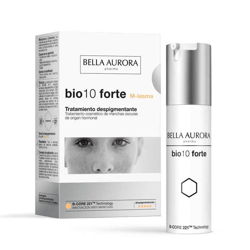 BIO10 FORTE M-LASMA 30ML, Fluid Solution deep treatment for dark spots of a Hormonal Origin ( pregnancy, breastfeeding...). It acts as an anti-MSH agent competitively preventing excess alpha-MSH hormone which induces synthesis of Melanin. ApplicationTwice