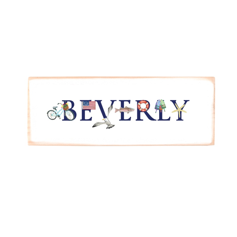 Prints on wood blocks in your choice of two sizes: 9x3 inches or 16x4 inches. Maple wood is hand painted white and slightly distressed then printed with our original Tina Labadini designs art.