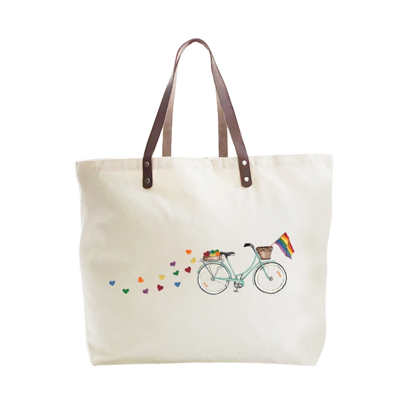 Large cotton canvas tote with leather handle is 22" x 15" x 5.5" and looks great with our original Tina Labadini Designs art. Our stylish totes are fun accessories and make great gifts.