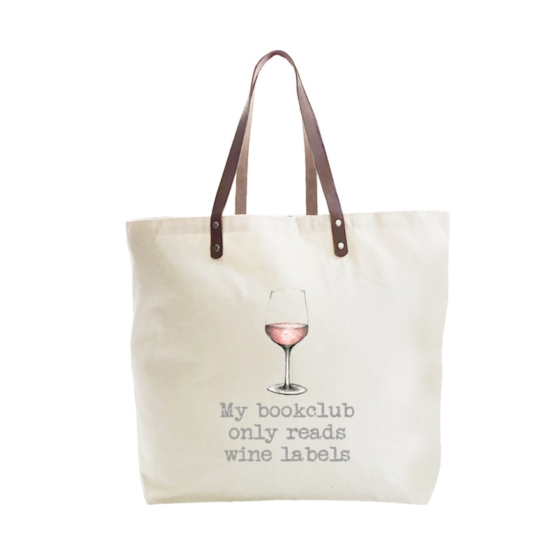 Large cotton canvas tote with leather handle is 22" x 15" x 5.5" and looks great with our original Tina Labadini Designs art. Our stylish totes are fun accessories and make great gifts.