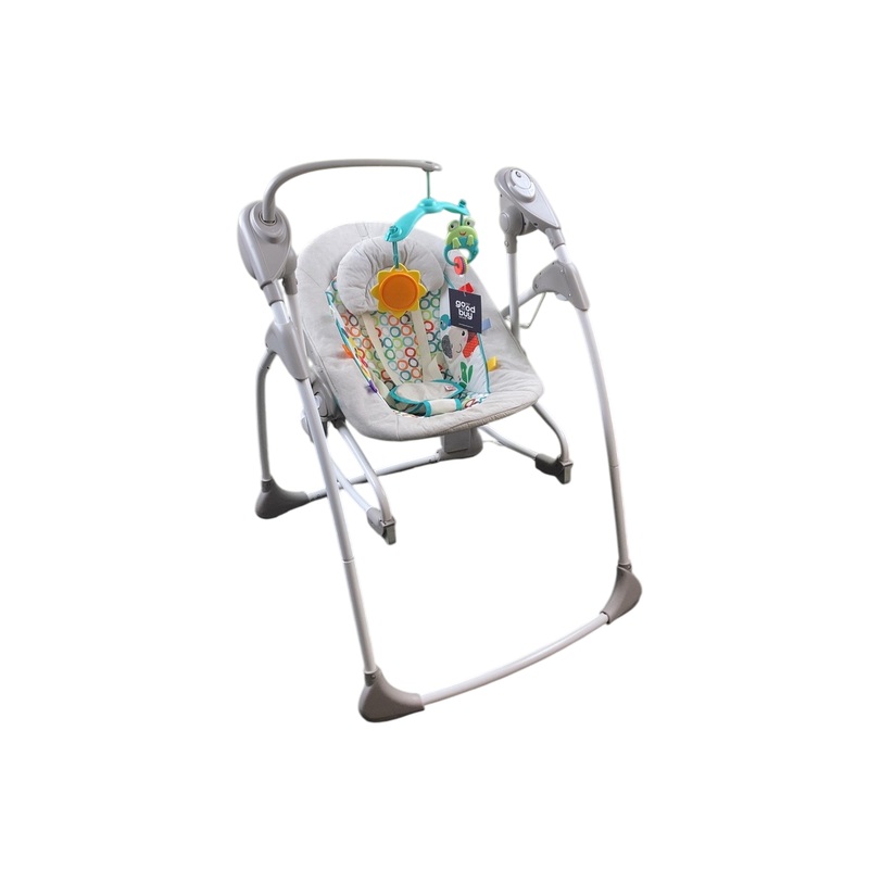This innovative product has a removable swing seat that doubles as a rocker, so youll have two great ways to soothe your little one. It features a 3-position reclining seat, melodies, nature sounds, timer, and a cute jungle theme. Can be used with batteries or as a plug-in.