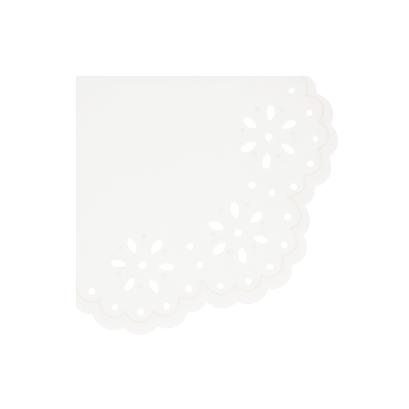 This pretty party range is inspired by broderie anglaise, a delicate lace eyelet embroidery design that's back in style. These large white napkins are ideal for table layering and for practical use too. They're perfect for bridal showers, baby showers or a