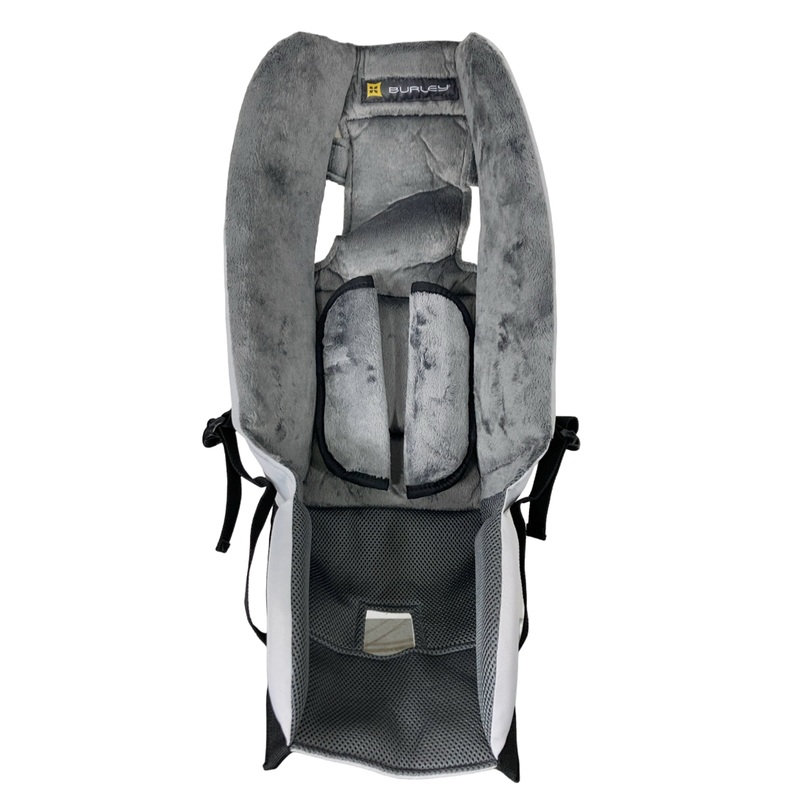 “Keep baby safe and comfortable while strolling or jogging. Thick padding and lumbar support create ultimate comfort. Compatible with all trailers with a 5-point harness. Recommended for ages 3-12 months. “