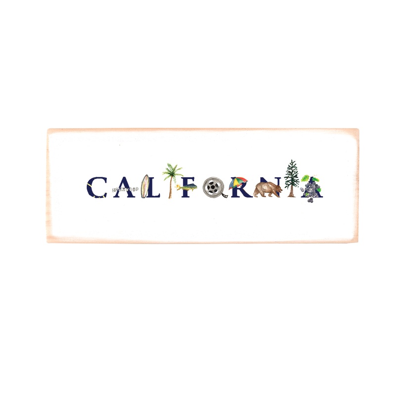 Prints on wood blocks in your choice of two sizes: 9×3 inches or 16×4 inches. Maple wood is hand painted white and slightly distressed then printed with our original Tina Labadini designs art.