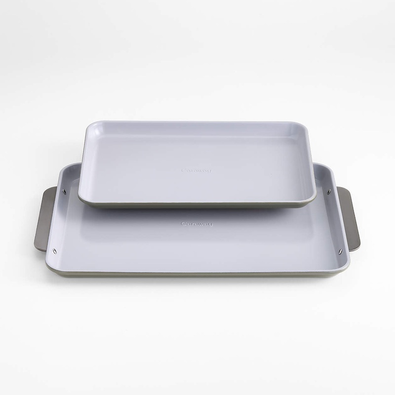 S97471847Caraway Ceramic Non-Stick Baking Sheet Duo Olive Green with Gunmetal Hardware