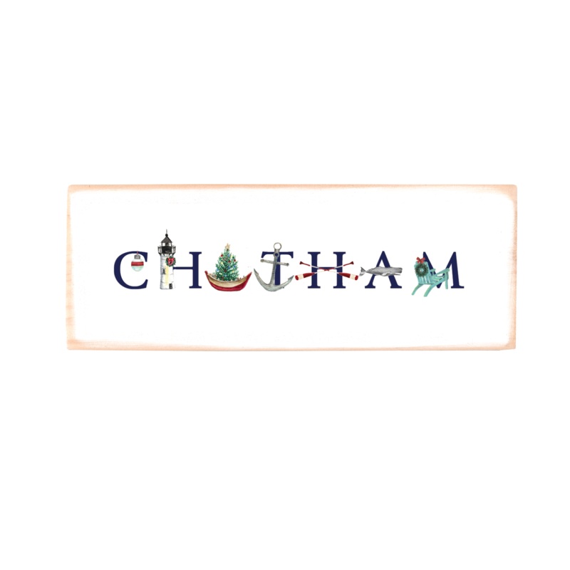 Prints on wood blocks in your choice of two sizes: 9x3 inches or 16x4 inches. Maple wood is hand painted white and slightly distressed then printed with our original Tina Labadini designs art.