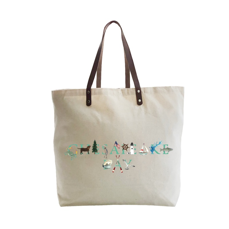 Large cotton canvas tote with leather handle is 22″ x 15″ x 5.5″ and looks great with our original Tina Labadini Designs art. Our stylish totes are fun accessories and make great gifts.