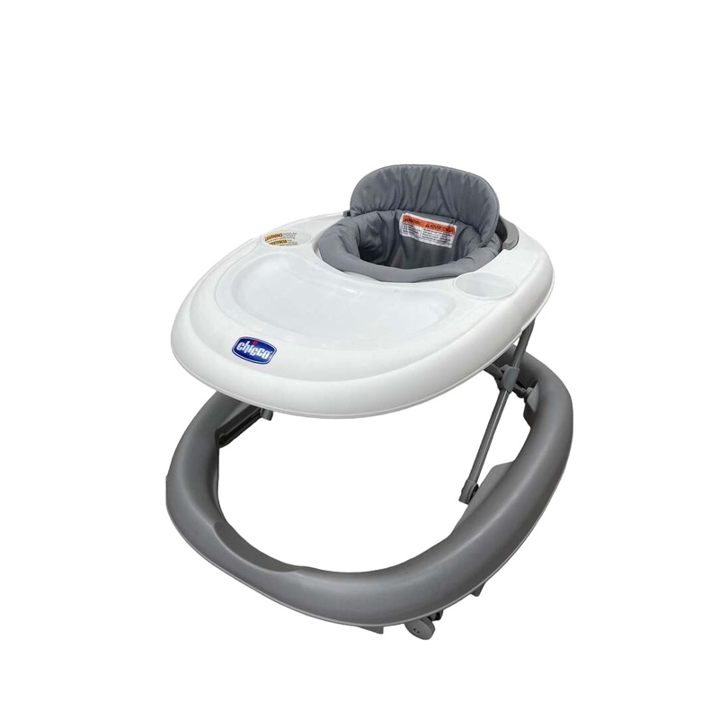 Condition: Open Box Designed for both comfort and convenience, the Chicco Mod Walker in Grey features a BPA-free tray with cup holders and a padded, adjustable seat. Recommended for children under 26 lbs and 33 inches tall, the walker offers three height p