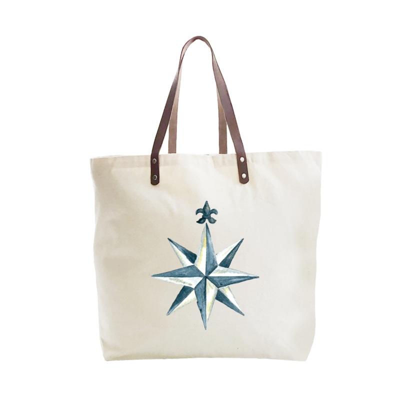 Large cotton canvas tote with leather handle is 22″ x 15″ x 5.5″ and looks great with our original Tina Labadini Designs art. Our stylish totes are fun accessories and make great gifts.