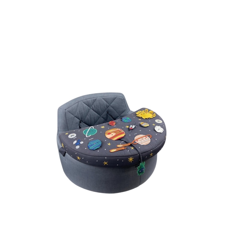 Now your little one can have a matching cozy chair to join the family! This soft foam chair includes a removable soft foam tray with multiple toys to engage babys senses and fine motor skills.