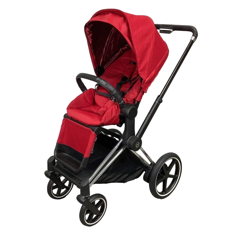 Cybex E-PRIAM Electric Stroller, 2019, Chrome With Black Details, True Red