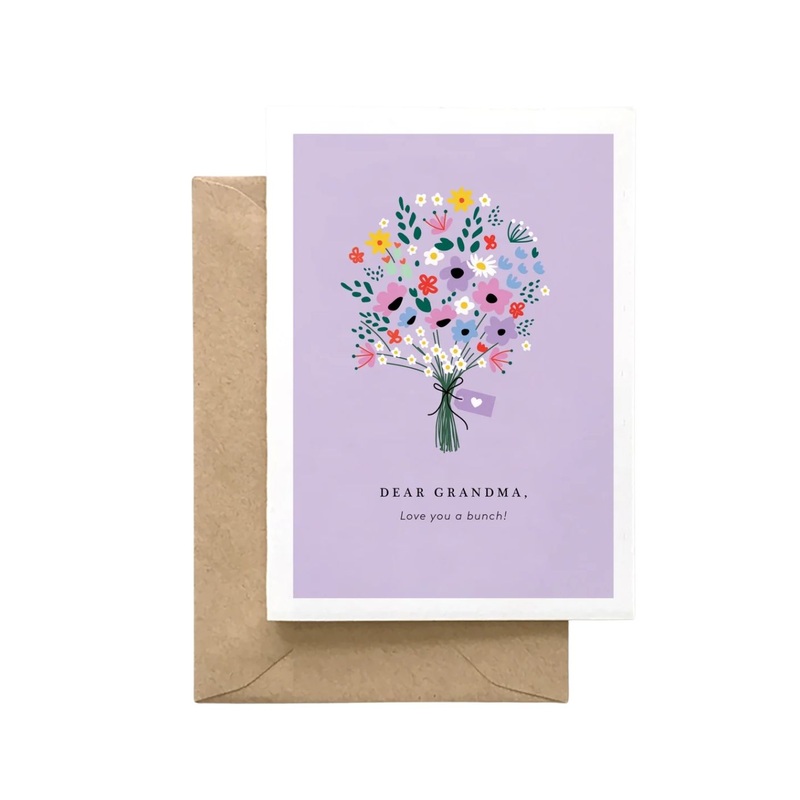 The DearGrandma, Love You a Bunch! Card by Spaghetti&Meatballs is a sweet, A6-sized greeting crafted from high-quality 100lb eggshell-finish cardstock.The clean, heartfelt design features minimalist sentiment on the front and is left blank inside, perfect for personal messages. Each card arrives with a kraft brown envelope and clear sleeve for protection.Proudly printed in the USA by the Buffalo-based sister duo behind the brand, it brings warmth, charm, and just the right touch of sass to express your love.