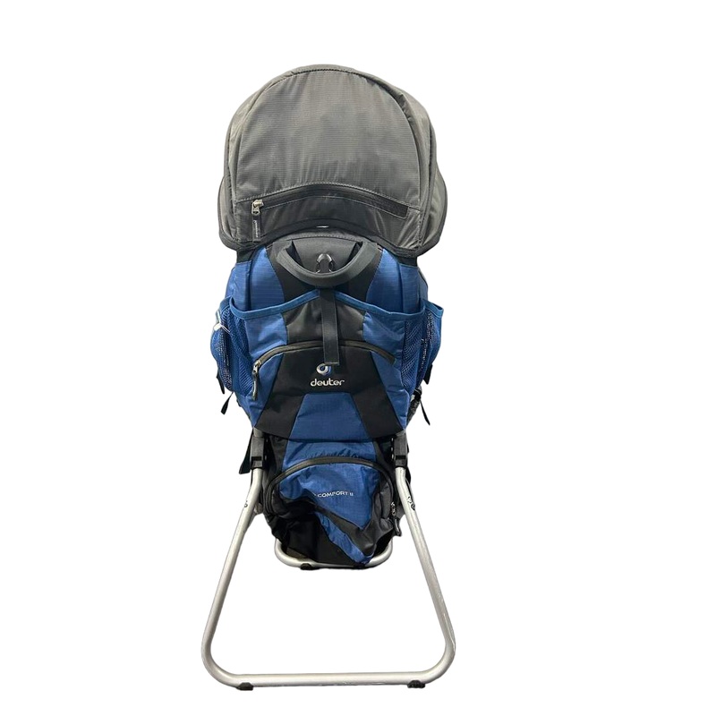 “High quality comfortable backpack ready for your next family adventure. Soft chin pad provides support for little ones to rest or nap. Features ample storage pockets, and a handy kickstand. Holds children up to 45 lbs.”