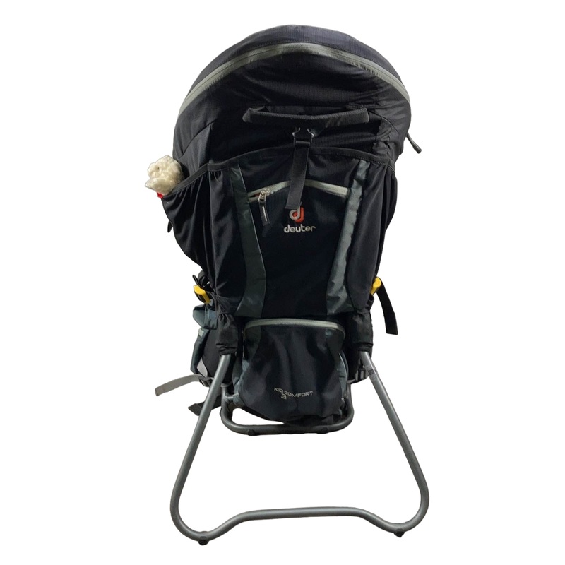 “High quality comfortable backpack ready for your next family adventure. The rugged, yet lightweight design, makes it easy to put on and take anywhere. The soft chin pad provides support for little ones to rest or nap. Features ample storage pockets, a sun canopy, and a handy kickstand.”