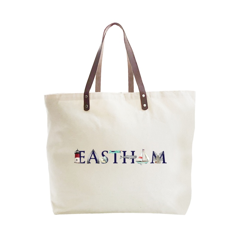 Large cotton canvas tote with leather handle is 22" x 15" x 5.5" and looks great with our original Tina Labadini Designs art. Our stylish totes are fun accessories and make great gifts.