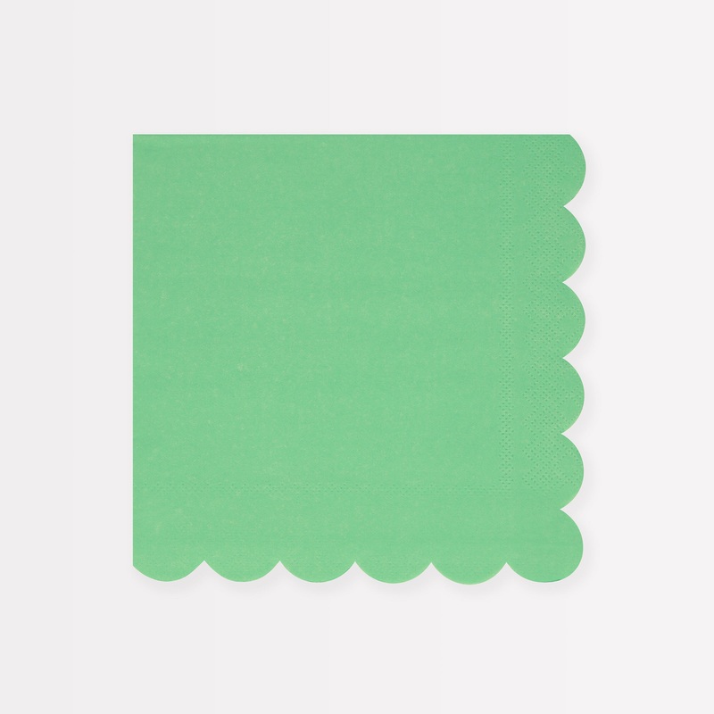 The color emerald green is associated with nature, new beginnings, health and wealth. So these gorgeous napkins, with a stylish scalloped edge, are perfect for a garden party, baby shower, a new home get-together, or any birthday or family meal to celebrate being happy and healthy. These napkins are part of our stylish new take on mix and match tableware.