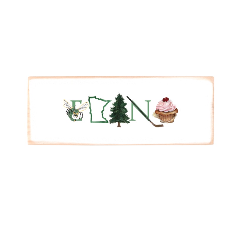 Prints on wood blocks in your choice of two sizes: 9x3 inches or 16x4 inches. Maple wood is hand painted white and slightly distressed then printed with our original Tina Labadini designs art.
