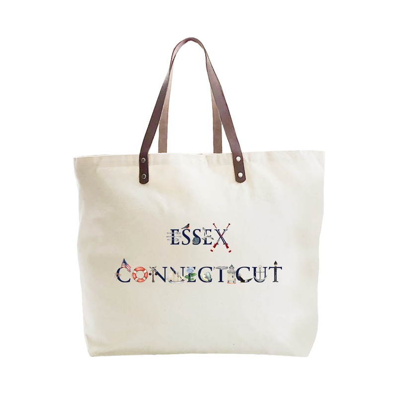 Large cotton canvas tote with leather handle is 22" x 15" x 5.5" and looks great with our original Tina Labadini Designs art. Our stylish totes are fun accessories and make great gifts.