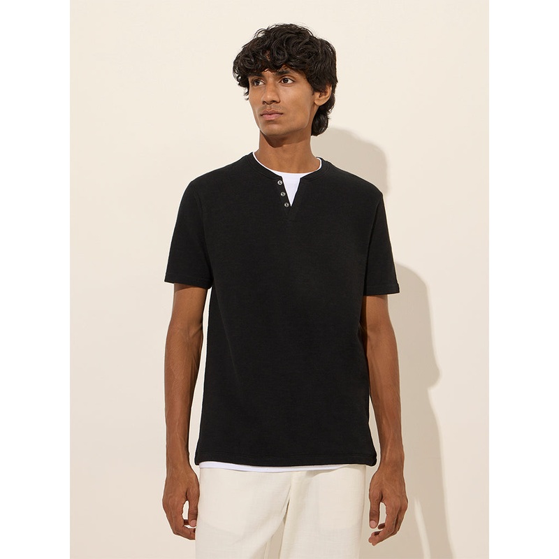 Be the first to review “ETA Black Slim-Fit Henley Cotton T-Shirt”