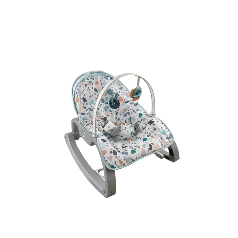 Fun and convenient rocker. Toy bar removes to turn this into a toddler chair. Calming vibrations soothe younger babies. Fold out kickstand reclines and stabilizes seat for lounging or playtime.