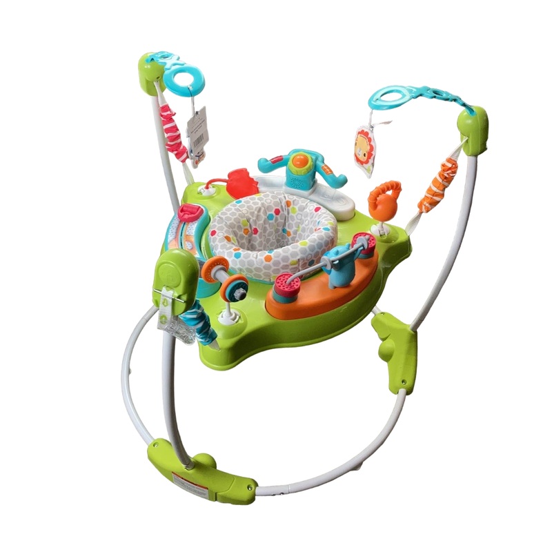 Condition: Gently Used "Bounce baby bounce! Your little one will have plenty of excitement and excercise with this fitness themed Jumperoo. Adjustable seat throughout growth, features lights & sounds and folds down easily for storage." Would you rather pay