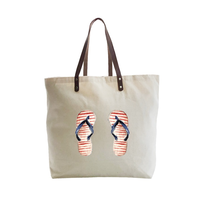 Large cotton canvas tote with leather handle is 22" x 15" x 5.5" and looks great with our original Tina Labadini Designs art. Our stylish totes are fun accessories and make great gifts.