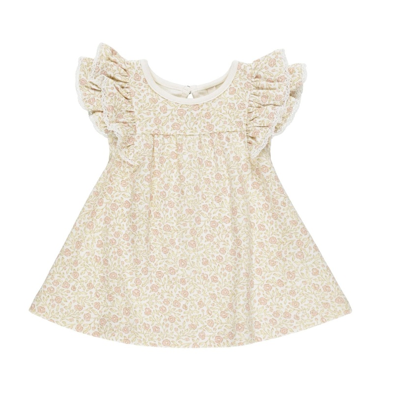 Velvety soft flutter sleeve dress with back button closure. Coordinating bloomers included with all sizes.Details:Featuring primrose print on 'ivory' hue. Spring blossoms are in bloom on this light pastel look.Care: Machine wash cold. Tumble dry low.Made o