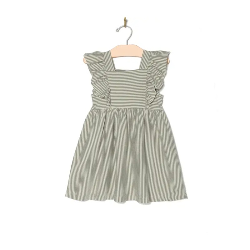This new flutter tank dress features flutters over the shoulder and a square neckline. In 100% combed jersey cotton and steel stripe print, it will be comfortable and stylish for all the places she'll go.Details:Made in ThailandFabric: 100% CottonSeason: S