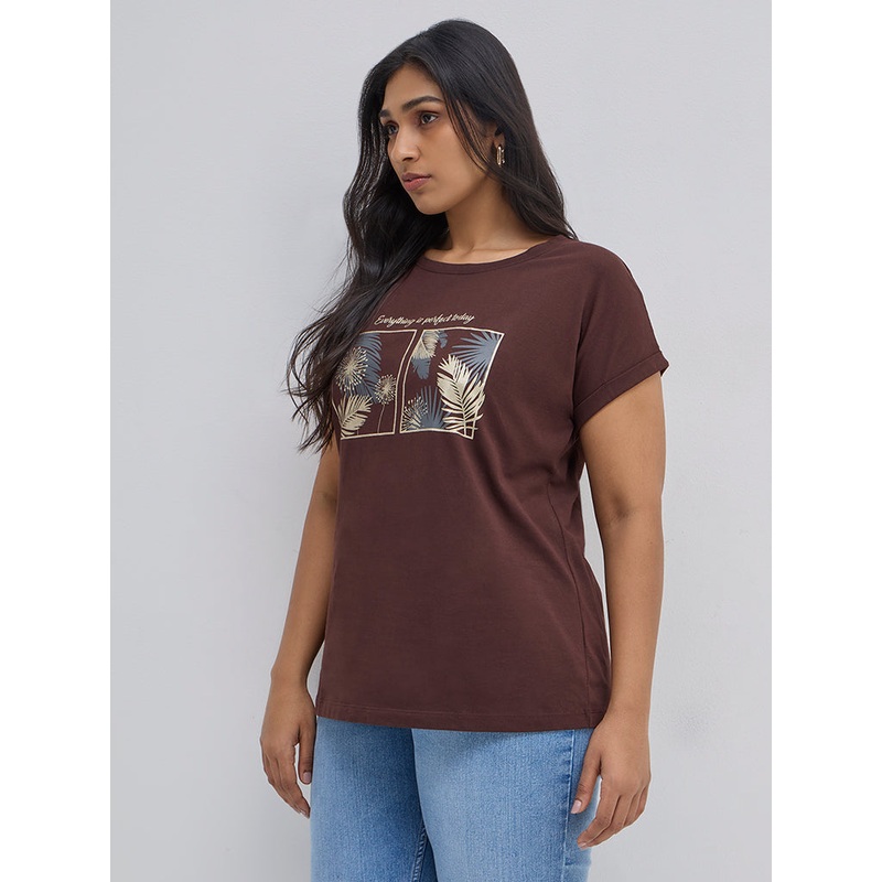 Be the first to review “Gia Brown Leaf Printed Cotton T-Shirt”