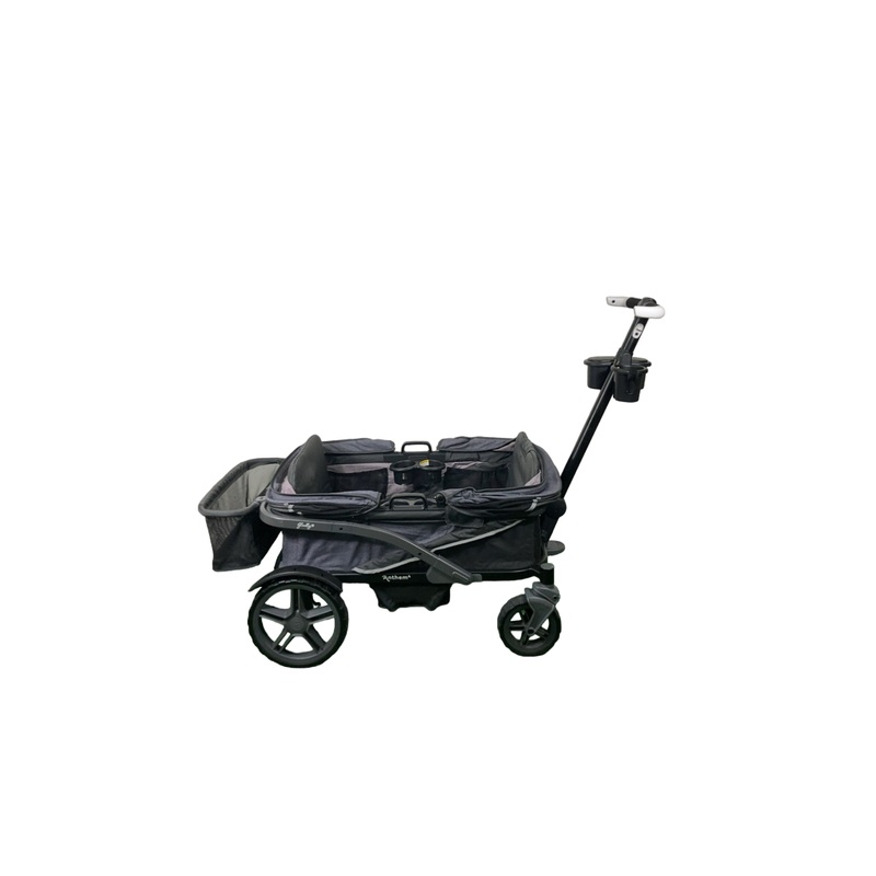 Condition: Gently Used This top of the line wagon stroller seats 4 children, has two XL canopies, parent and child cup holders, an interior mattress, and plenty of excess storage! Built sturdy for easy cruising for anywhere you want to go! This model does