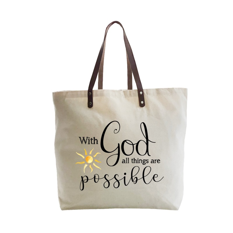 Large cotton canvas tote with leather handle is 22″ x 15″ x 5.5″ and looks great with our original Tina Labadini Designs art. Our stylish totes are fun accessories and make great gifts.
