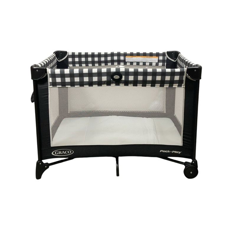 Condition: Open Box This unique Pack 'n Play features folding feet and wheels for 20% more compact fold than other Graco playards. The full-size infant bassinet provides an easy-to-reach and easy-to-view spot for your baby to sleep. Make sure your little o