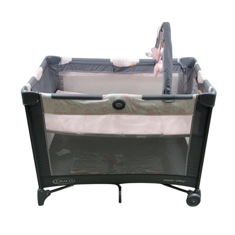 Condition: Open Box This unique Pack 'n Play features folding feet and wheels for 20% more compact fold than other Graco playards. The full-size infant bassinet provides an easy-to-reach and easy-to-view spot for your baby to sleep. Make sure your little o