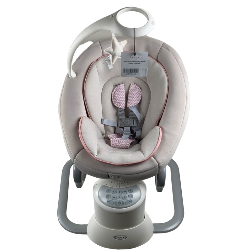 Condition: Gently Used "Some babies like swings, some like rockers. Now you can have the best of both worlds! Choose from 8 different motions swinging front to back or side to side or take the seat off to use it as a rocker. Theres also 15 different music