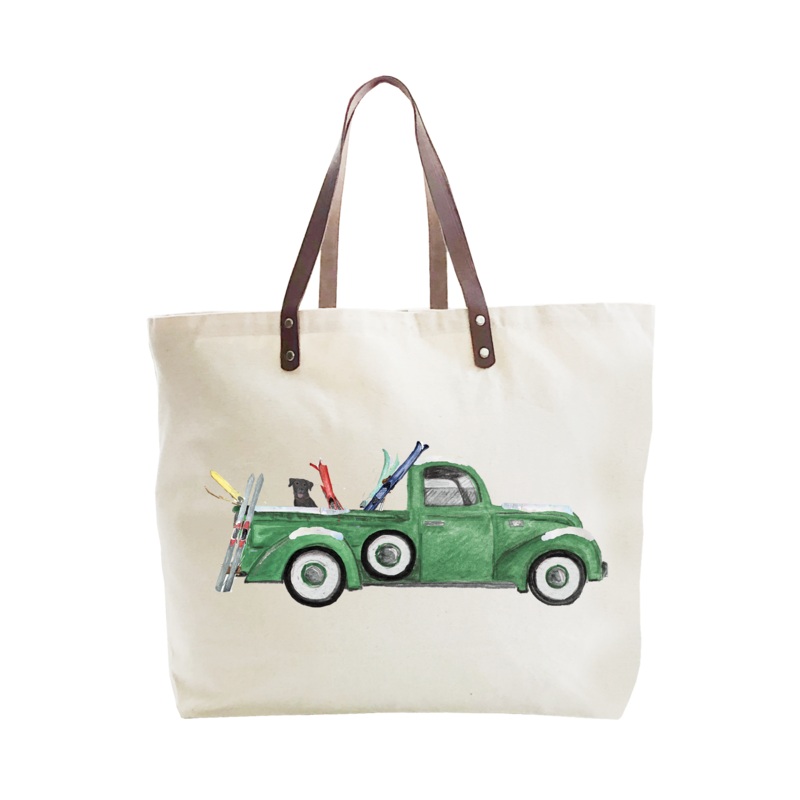 Large cotton canvas tote with leather handle is 22" x 15" x 5.5" and looks great with our original Tina Labadini Designs art. Our stylish totes are fun accessories and make great gifts.