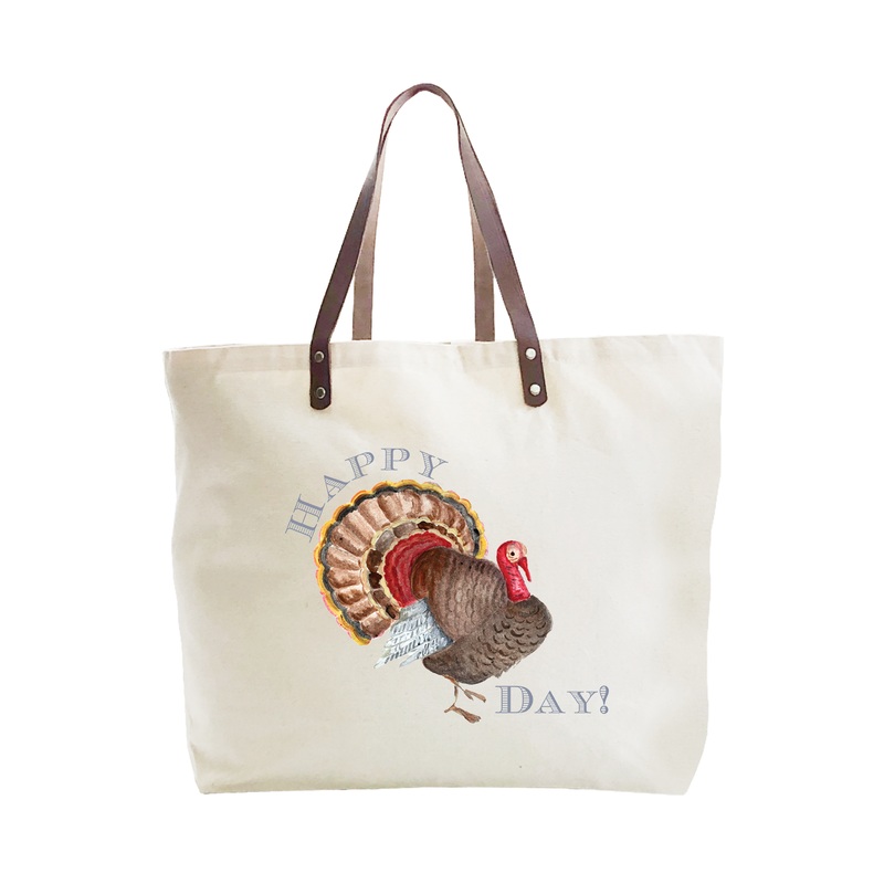 Large cotton canvas tote with leather handle is 22" x 15" x 5.5" and looks great with our original Tina Labadini Designs art. Our stylish totes are fun accessories and make great gifts.