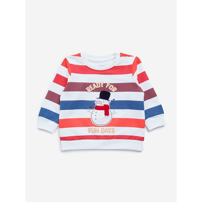 This cozy sweatshirt from HOP Baby features multicolour stripes and a playful snowman print with a fun text. Made from soft fabric, its the perfect layer for keeping your little one warm and stylish during chilly days.