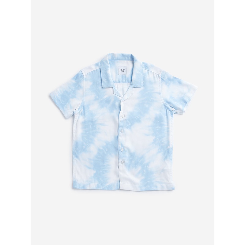 Let your child embrace a fun and vibrant look with this blue shirt by HOP Kids. Made from a breathable fabric, it features a classic tie-dye pattern with a collar that extends to a button placket.