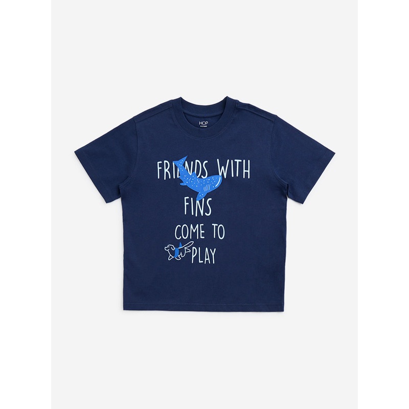 HOP Kids Navy Text Printed Cotton T-Shirt LBNU253622055458