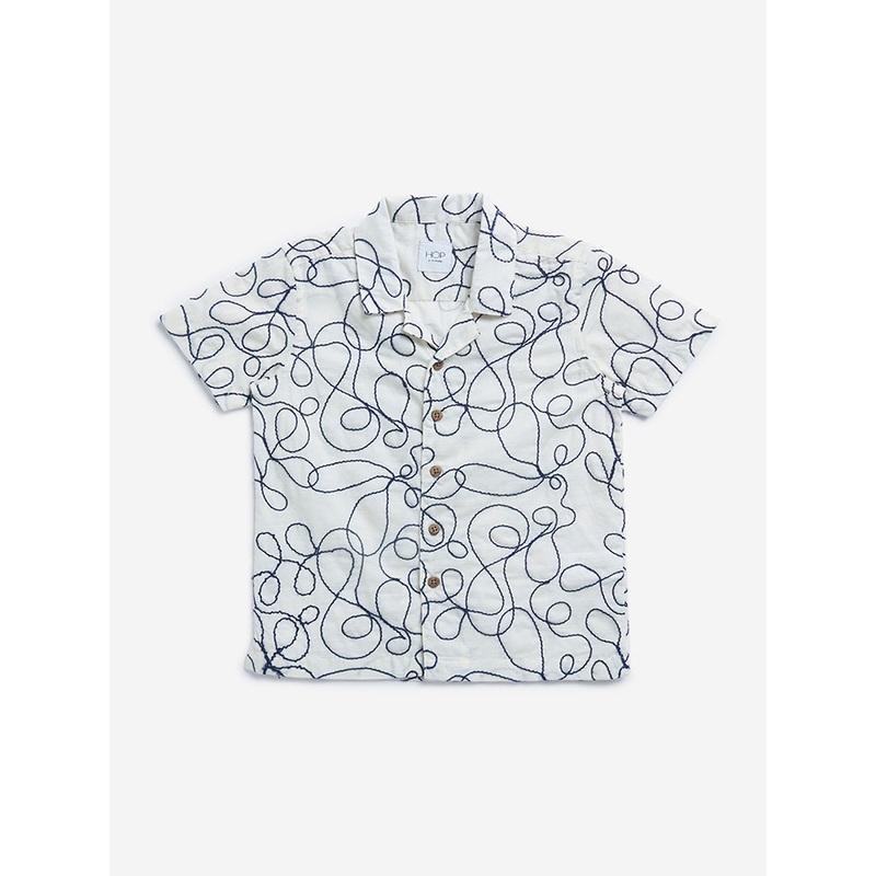 This off-white shirt by HOP Kids features an abstract embroidered design. It is crafted from a cotton-rich material featuring a notched collar, button placket and short sleeves for an adorable look.