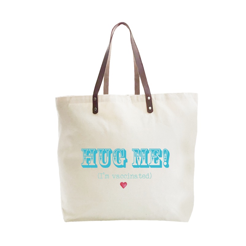 Large cotton canvas tote with leather handle is 22" x 15" x 5.5" and looks great with our original Tina Labadini Designs art. Our stylish totes are fun accessories and make great gifts.