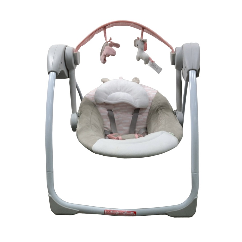 Condition: Gently Used Great device to soothe your little one. Just plug it in and watch your kiddo melt into the cozy motion of this amazing swing. It combines the big, yet smooth, motions that babies adore, with a small compact design that fits easily in