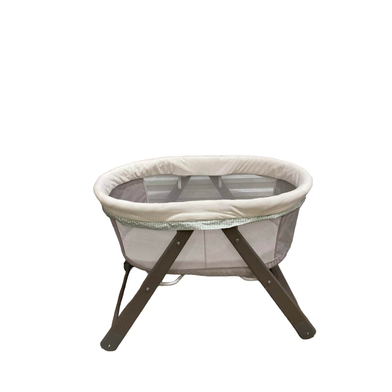 Condition: Gently Used "Style meets function in this beautiful bassinet that folds easily for storage or transport. It features a solid wood frame, extra spacious sleeping area, rocking or stationary modes, extendable canopy, Dream Comfort fabric which foc