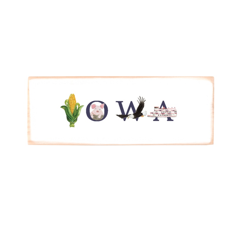 iowa navy rectangle wood block