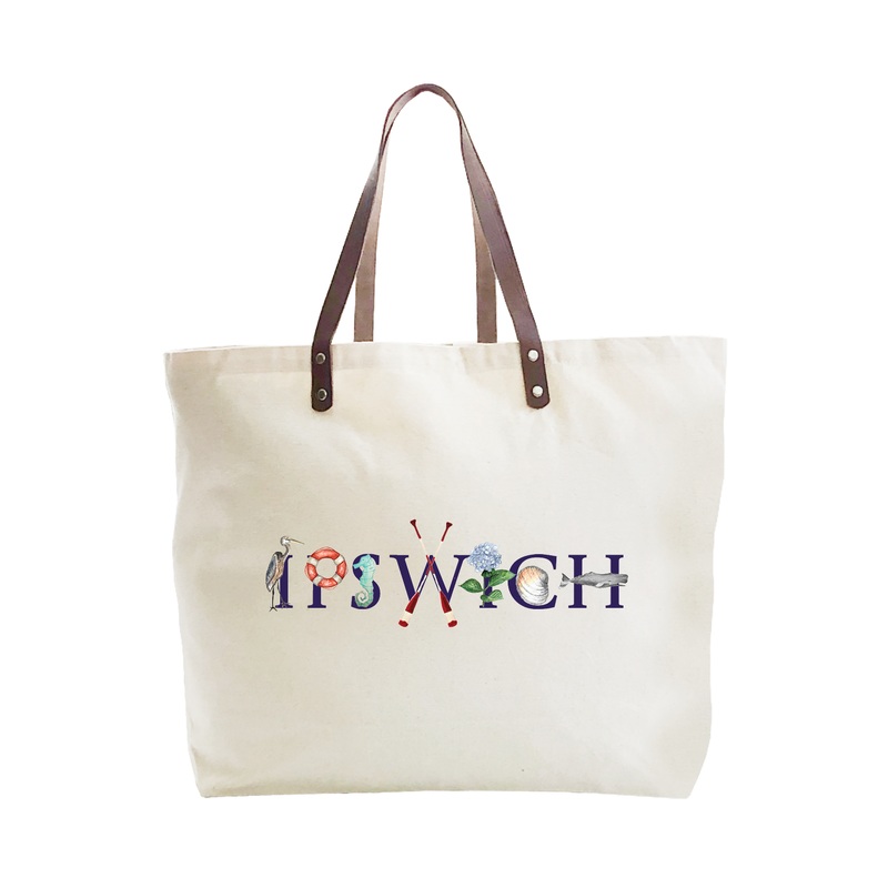 Large cotton canvas tote with leather handle is 22" x 15" x 5.5" and looks great with our original Tina Labadini Designs art. Our stylish totes are fun accessories and make great gifts.
