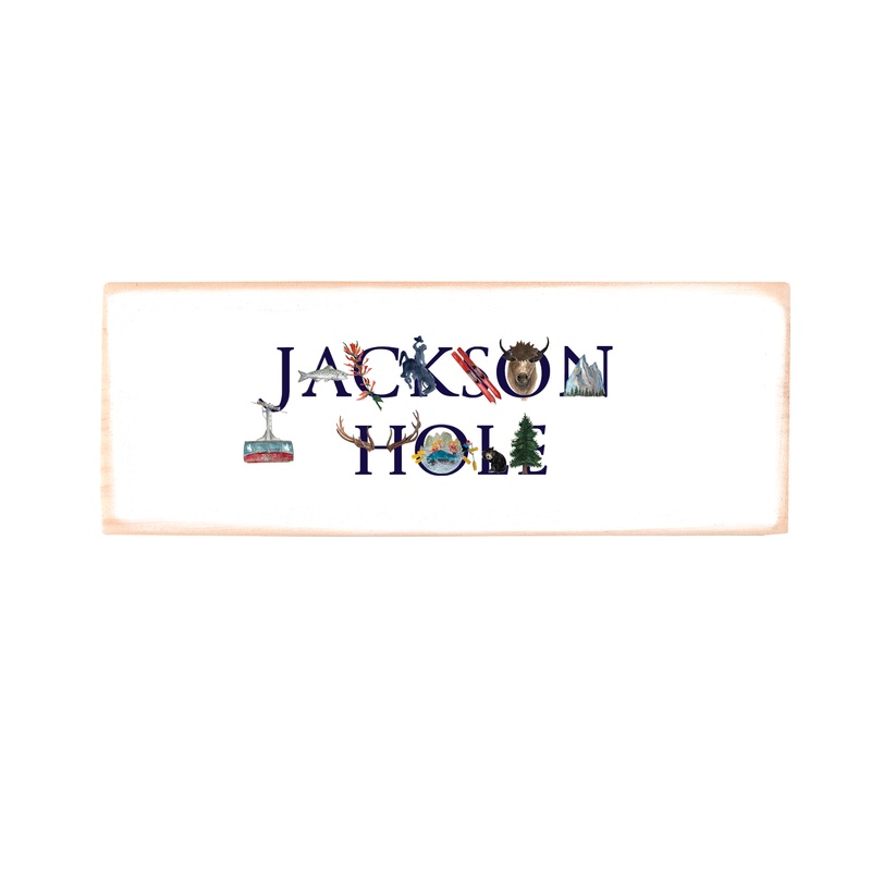 Prints on wood blocks in your choice of two sizes: 9x3 inches or 16x4 inches. Maple wood is hand painted white and slightly distressed then printed with our original Tina Labadini designs art.