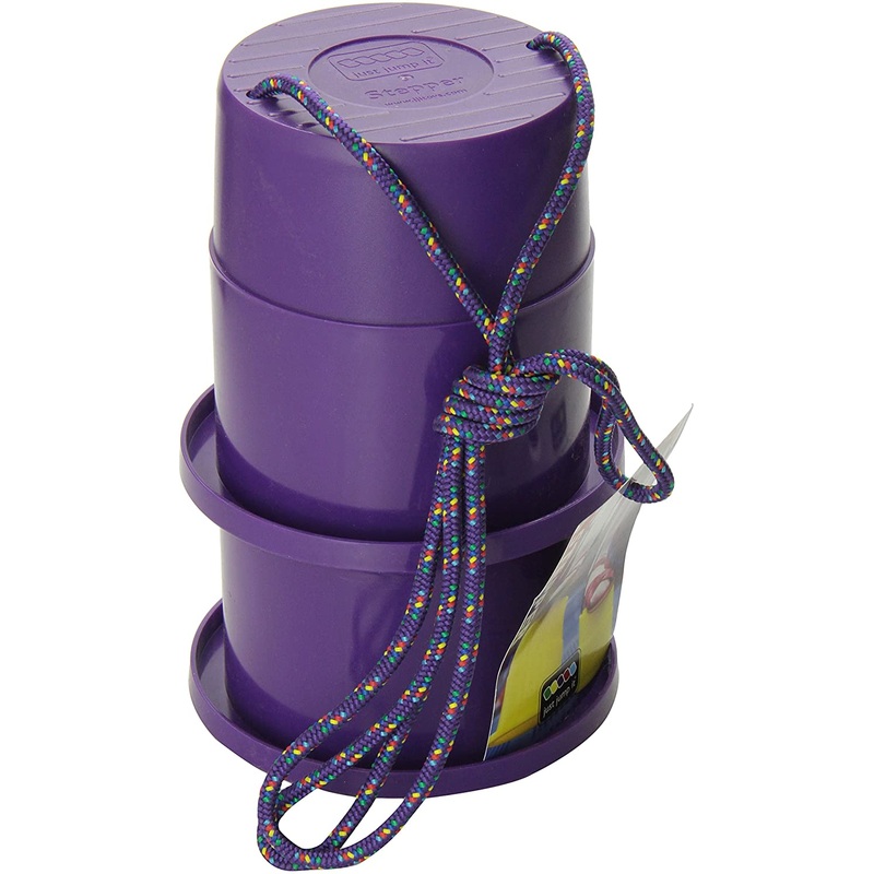 Agility, balance & coordination action all come together beautifully in this colorful version of the classic “can stepper.” Balance on the stepper and pull the cords to silly walk your way to fun! We updated a classic. The coffee can’s twine, sharp edges, and rust are replaced with a high-quality JJI line, a stable base flange, and slip-resistant foot grips to ensure safety while you play.